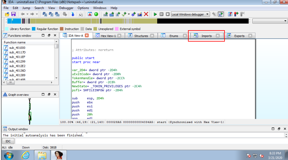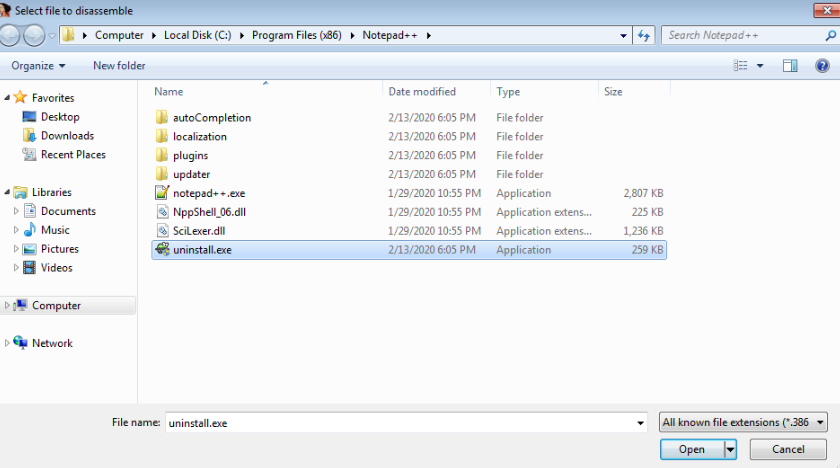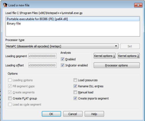 Lets launch "IDA Freeware" and select the file to import, in this case we'll be using "uninstall.exe"