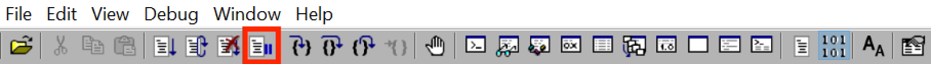 Click on the source/assembly and hit the “Insert or remove breakpoint” button shown below: